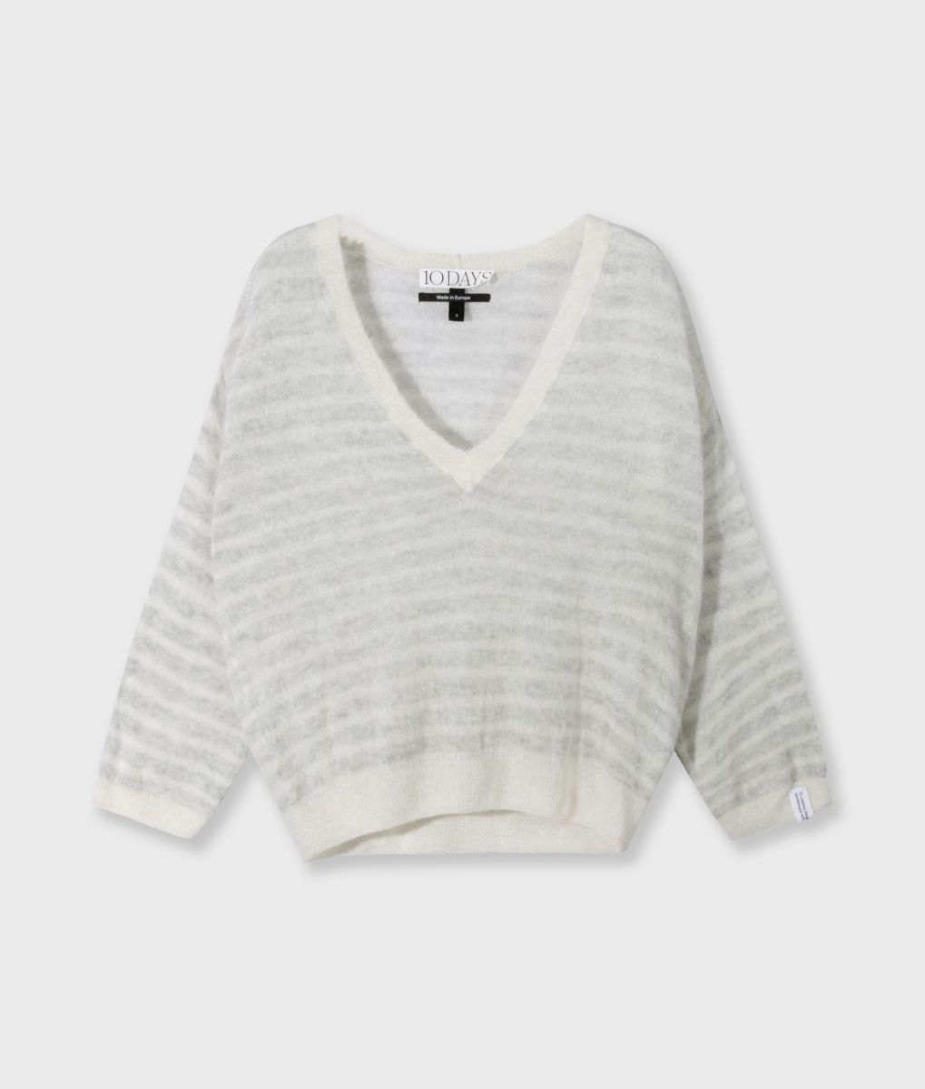 Feinstrickpulli von 10DAYS – Relaxed Fit * V-Ausschnitt * weicher Alpaka-Woll-Mix * Rippenstrickbündchen Farbe: light grey Material: 50% Alpaka, 37% Poyamid, 13% Wolle Pflege: Reinigung