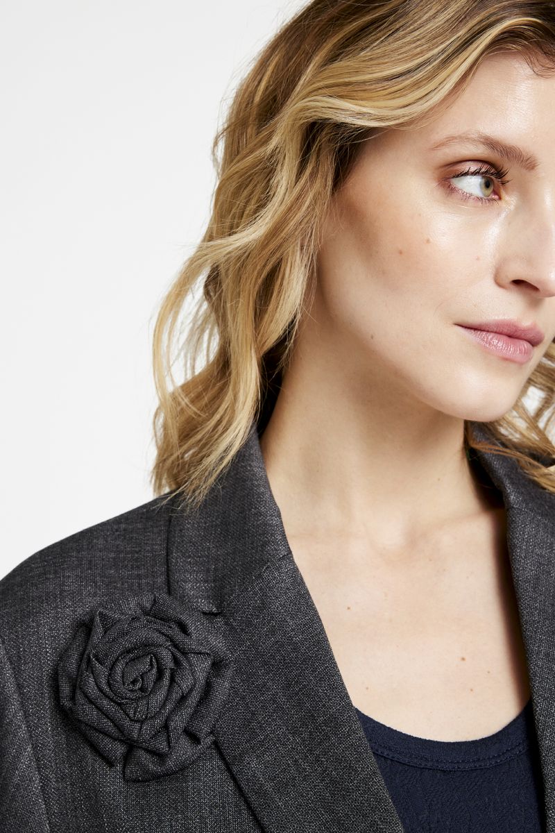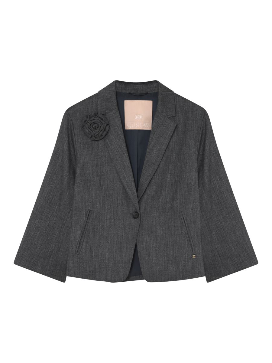 Blazer von Gustav Denmark – Cropped Fit * Reverskragen * Rosenbrosche * Innenfutter * Einknopfverschluss Farbe: dark grey Material: 1% Elastane 14% Rayon, 85% Polyester Pflege: Reinigung
