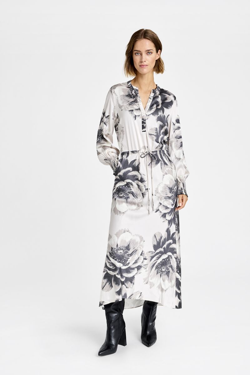 Kleid von Gustav Denmark – Maxi Länge * V-Ausschnitt * seitliche Eingriffstaschen * Bindeband in der Taille * Blumenprint Farbe: perfectly pale Material: 5% Elastan, 95% Viskose Pflege: Maschinenwäsche