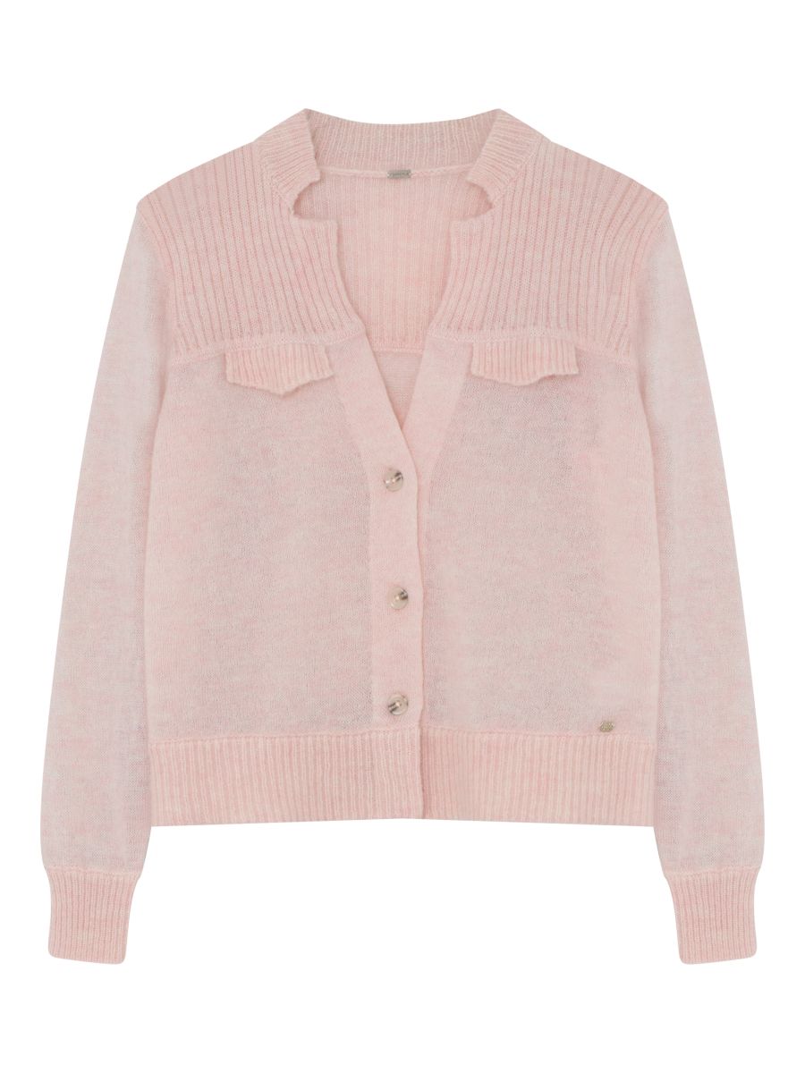 Strickjacke von Gustav Denmark – Rundhalsausschnitt * Rippstrickbündchen * durchgehende Knopfleiste Farbe: light blue Material: 20% Mohair, 30% Polyamide, 50% Wolle Pflege: Maschinenwäsche