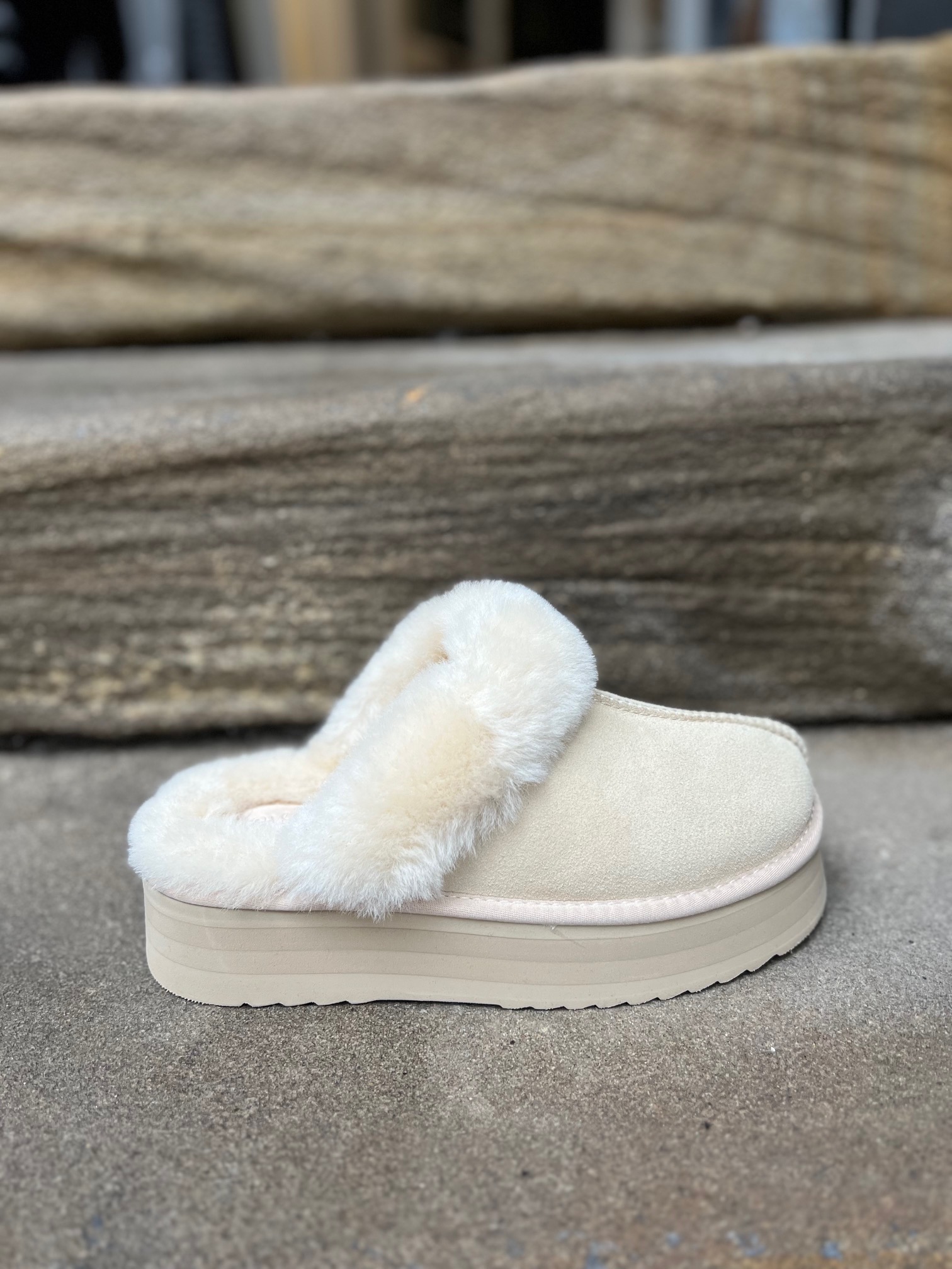 Schlappe von Lovelies Farbe: moonlight Obermaterial: Leder/Lammfell Sohle: Gummi