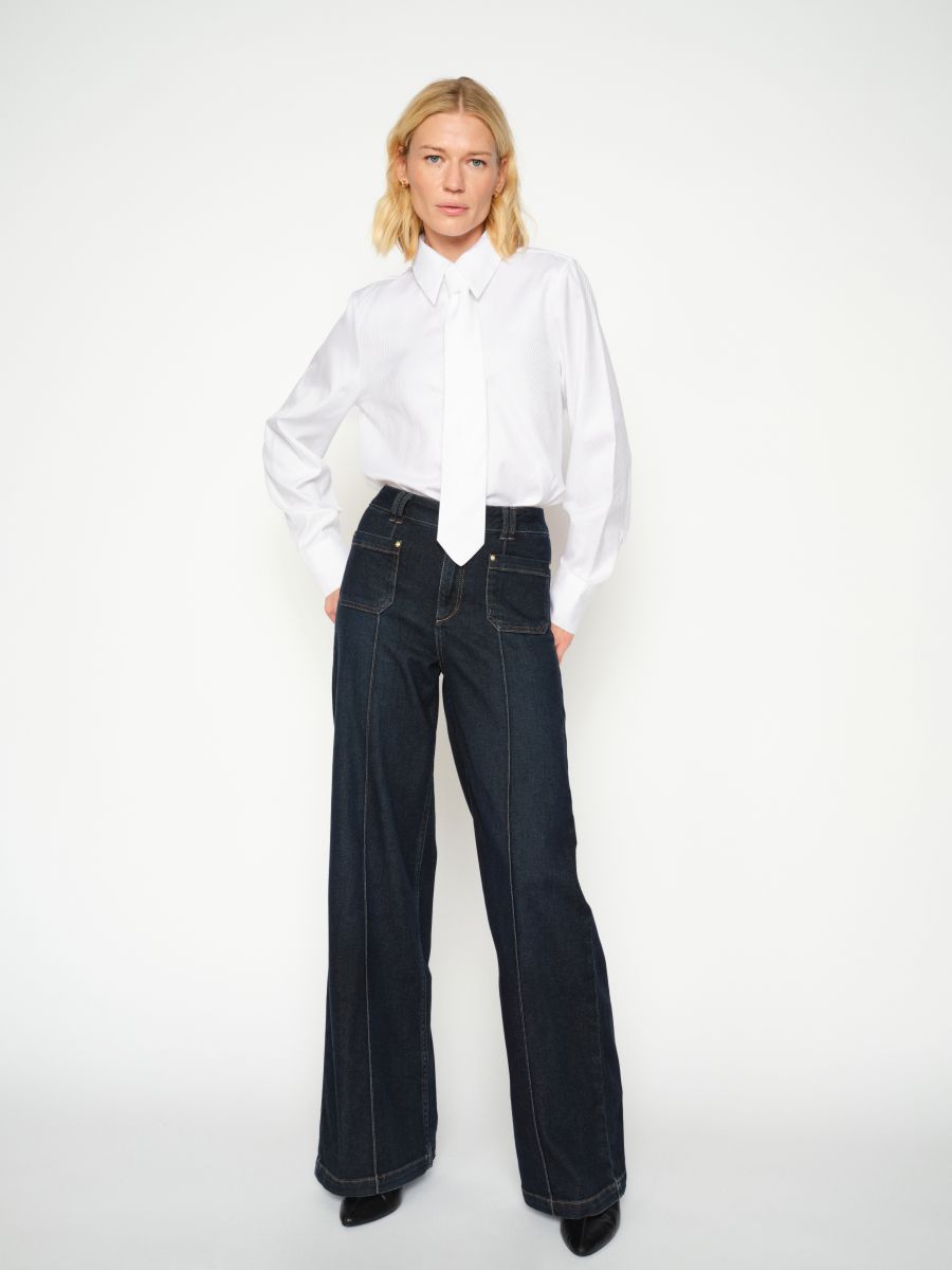 Bluse von Mos Mosh – Regular Fit * klassischer Kragen * abnehmbare Krawatte * Ton-in-Ton gestreift * weite Manschetten * durchgehende Knopfleiste Farbe: white Material: 100% Baumwolle Pflege: Maschinenwäsche