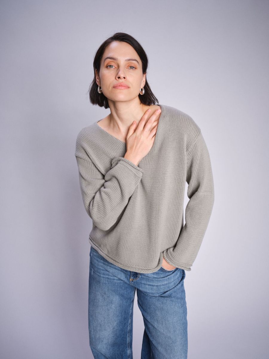 Strickpullover von Mos Mosh – Regular Fit * gerollte Bündchen * V-Ausschnitt Farbe: ecru Material: 100% Baumwolle Pflege: Maschinenwäsche