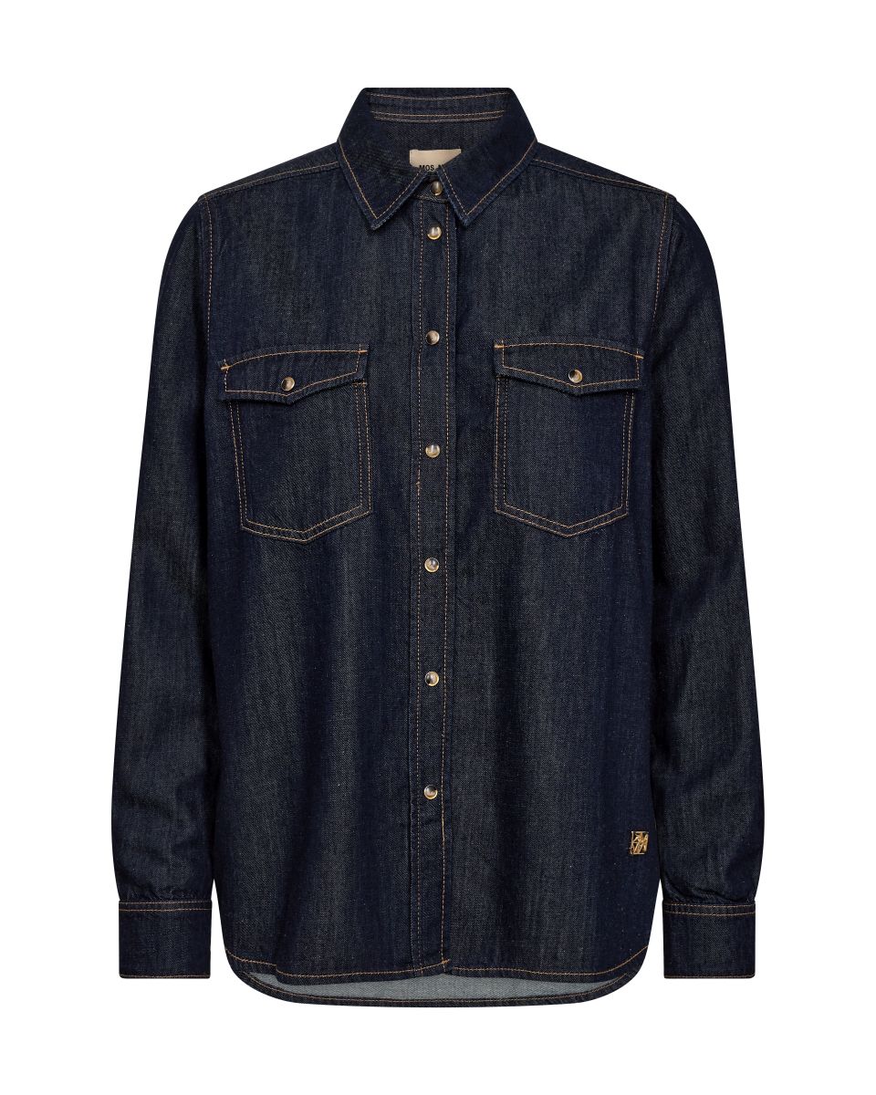 Jeanshemd von Mos Mosh – Regular Fit * durchgehende Knopfleiste * Brusttaschen * klassischer Kragen Farbe: dark blue Material: 60% TENCEL™ Lyocell, 40% Baumwolle Pflege: Maschinenwäsche