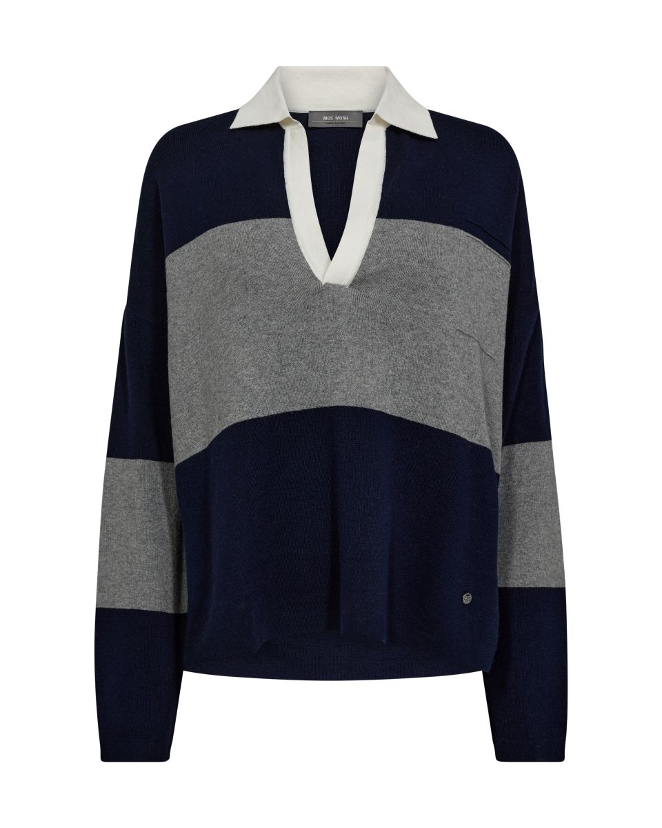Strickpullover von Mos Mosh – Regular Fit * V-neck mit Polokragen * Baumwoll-Kaschmir-Mischung