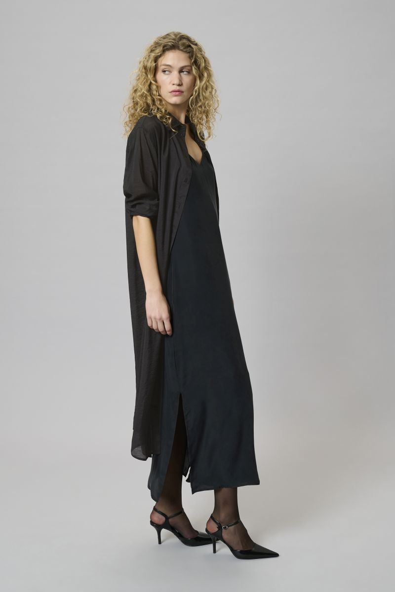 Longbluse von My Essential Wardrobe – Loose Fit * leicht transparent * durchgehende Knopfleiste * Kragen